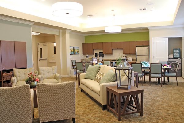 Residents can comfortably stroll down Main Street, the community’s expansive common area and central hub of residential life sparking memories and fostering engagement. Here, without ever leaving the interior of the community, residents can see a movie in the Main Street Theater, enjoy a snack and a beverage in the Main Street Cafe, or get a haircut in the Main Street Barber or Beauty Shop, among other supervised experiences. Family members say they truly enjoy this unique feature when they visit their loved ones, making their time together on-site that much more enjoyable.